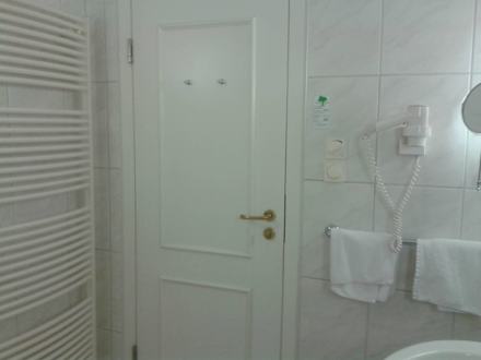 Bad, links Heizung, rechts Waschblock