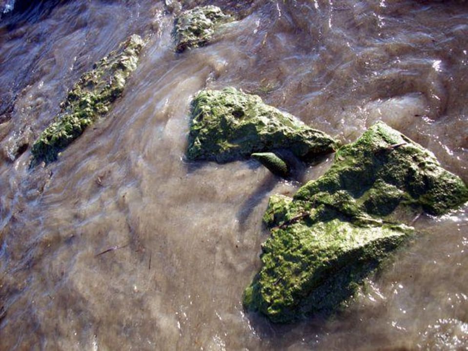 MeerBadespaß pur? Aber nicht am Corolla Strand! Überall im Wasser (sowohl direkt an der Küste sowie auch 100 m im Wasser) sind diese und größere Steine / Felsbrocken, äußerst schmerzhaft wenn man da drauf tritt oder dagegen. Offene Wunde + türkische Wasserqualität = böses Ende!
