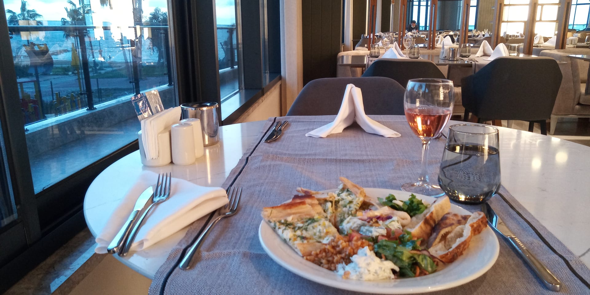 Feiner Platz mit Meerblick im Hauptrestaurant. Sehr ruhig und viele freie Plätze im Februar.