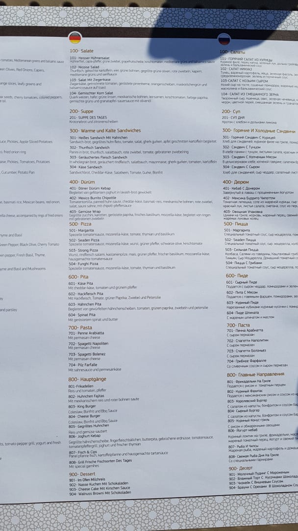Speisekarte Strand-/Poolrestaurant