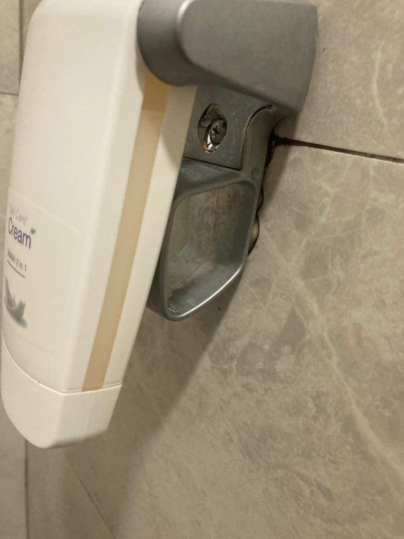 ZimmerSeifenspenderhalter wurde wahrscheinlich nie geputzt. Die Klobürste wollten wir euch hier nicht zeigen.