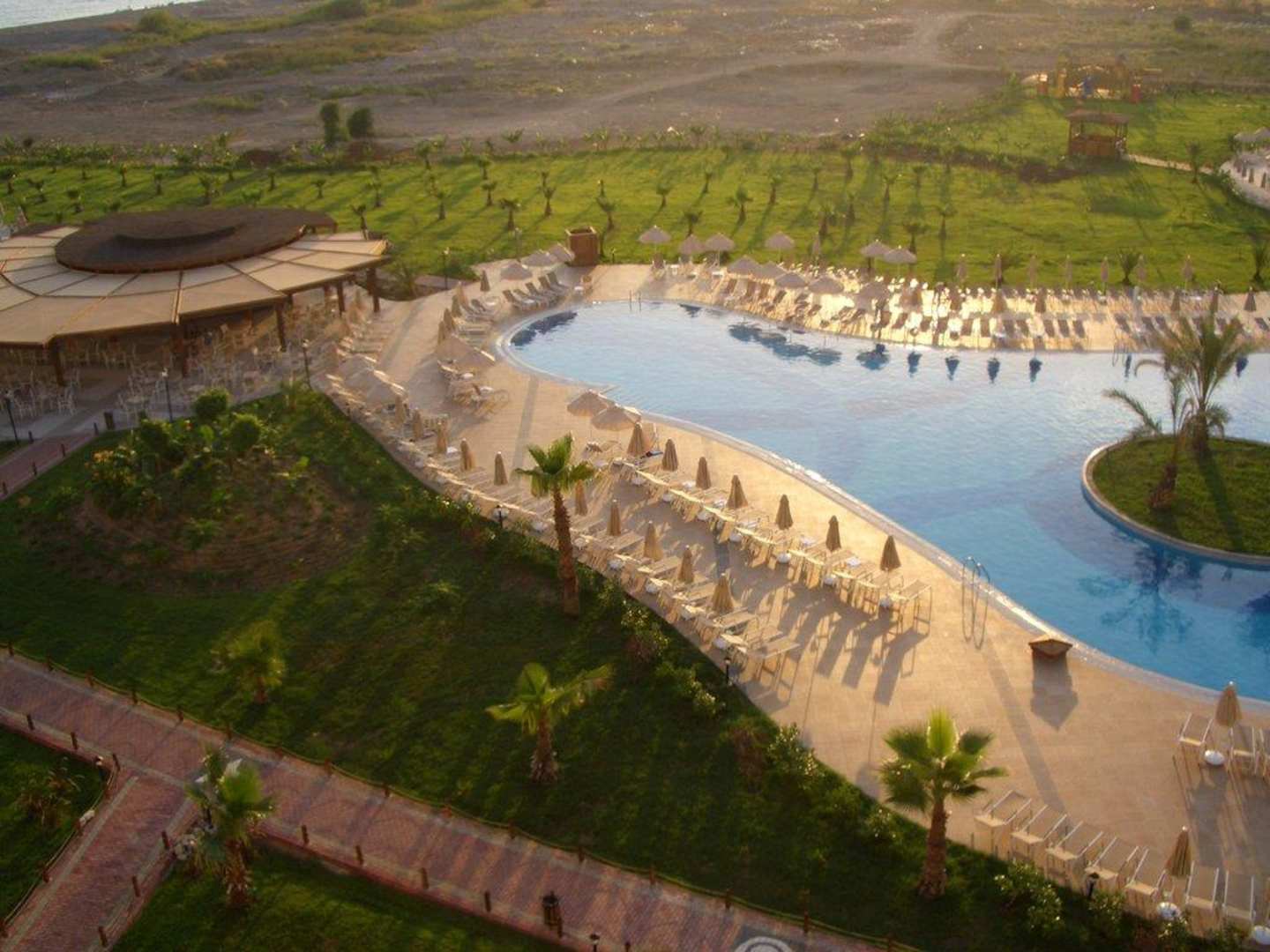 Abendsonne über Relaxpool und Poolbar