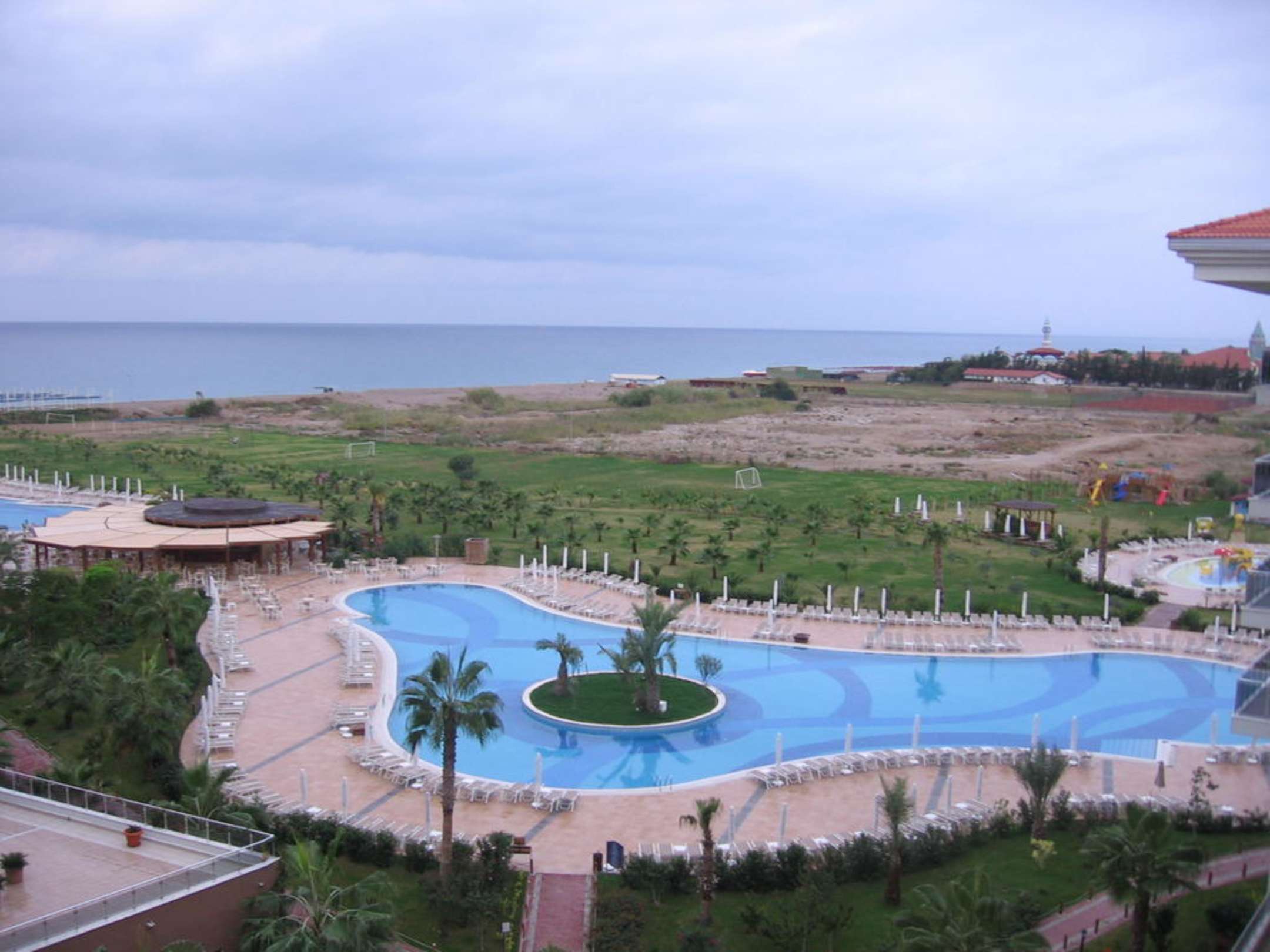 Ausblick vom Zimmer auf die Poolanlage