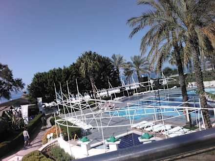 Blick von der Terrasse auf den Pool