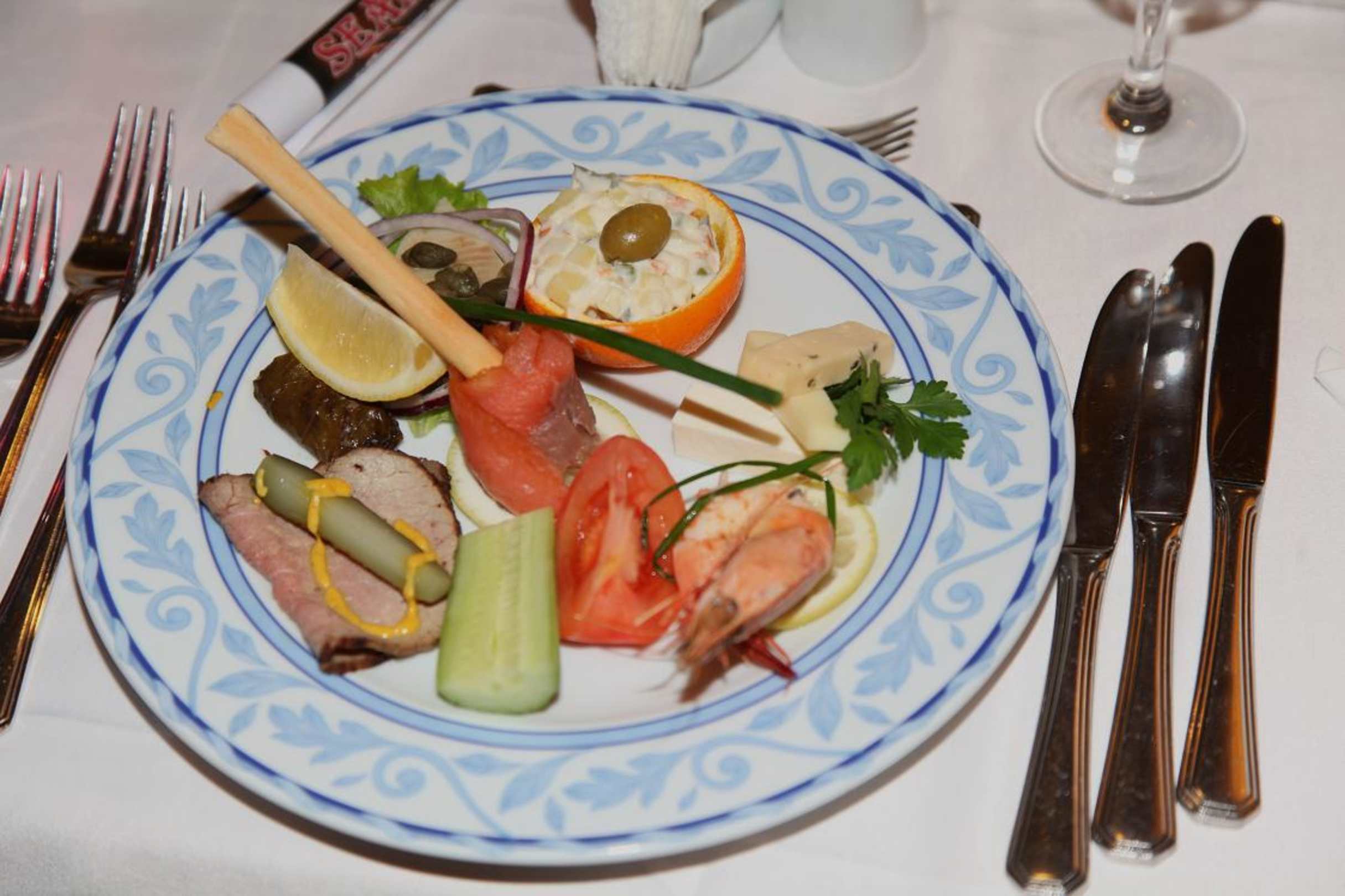 Kalte VorspeiseDer Küchenchef und seine Crew haben sich sehr viel Mühe gegeben um uns optisch und kulinarisch zu verwöhnen.
