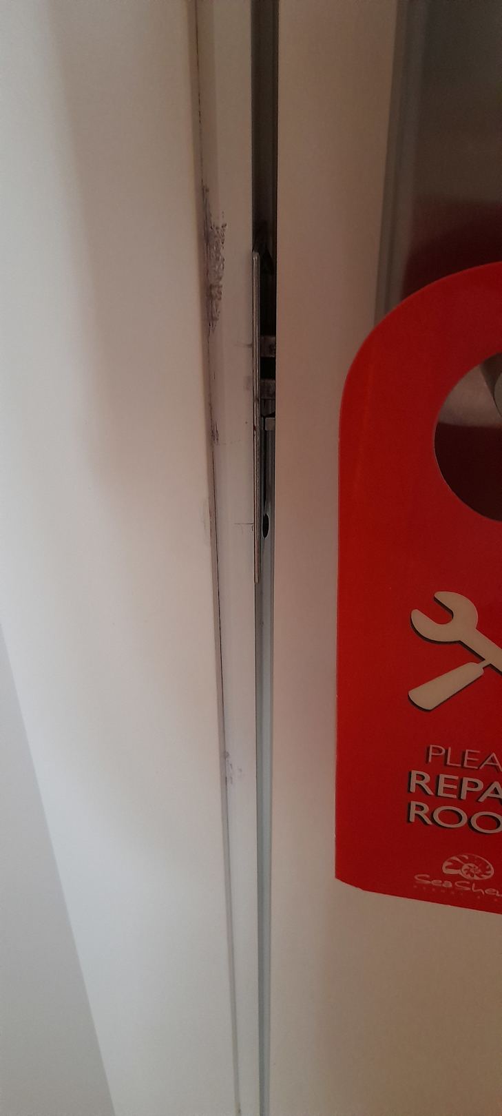 ZimmerAufbruchspuren der Zimmertür, Verschließen nicht möglich!