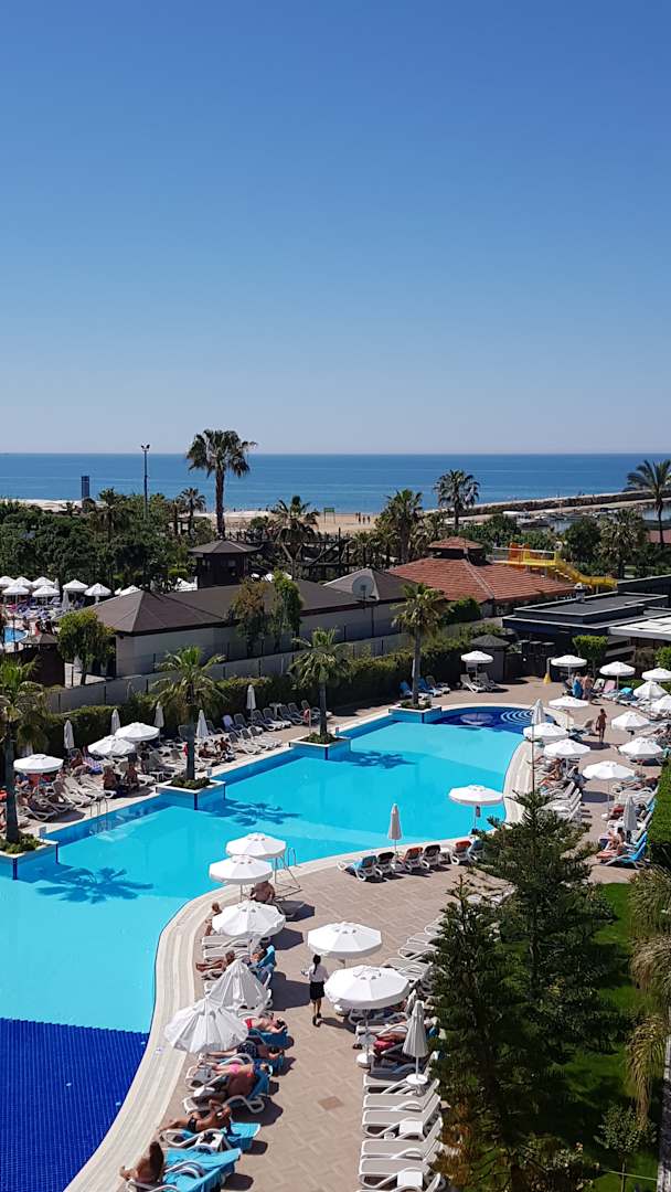 Ausblick seitlicher Meerblick über den Pool hinweg