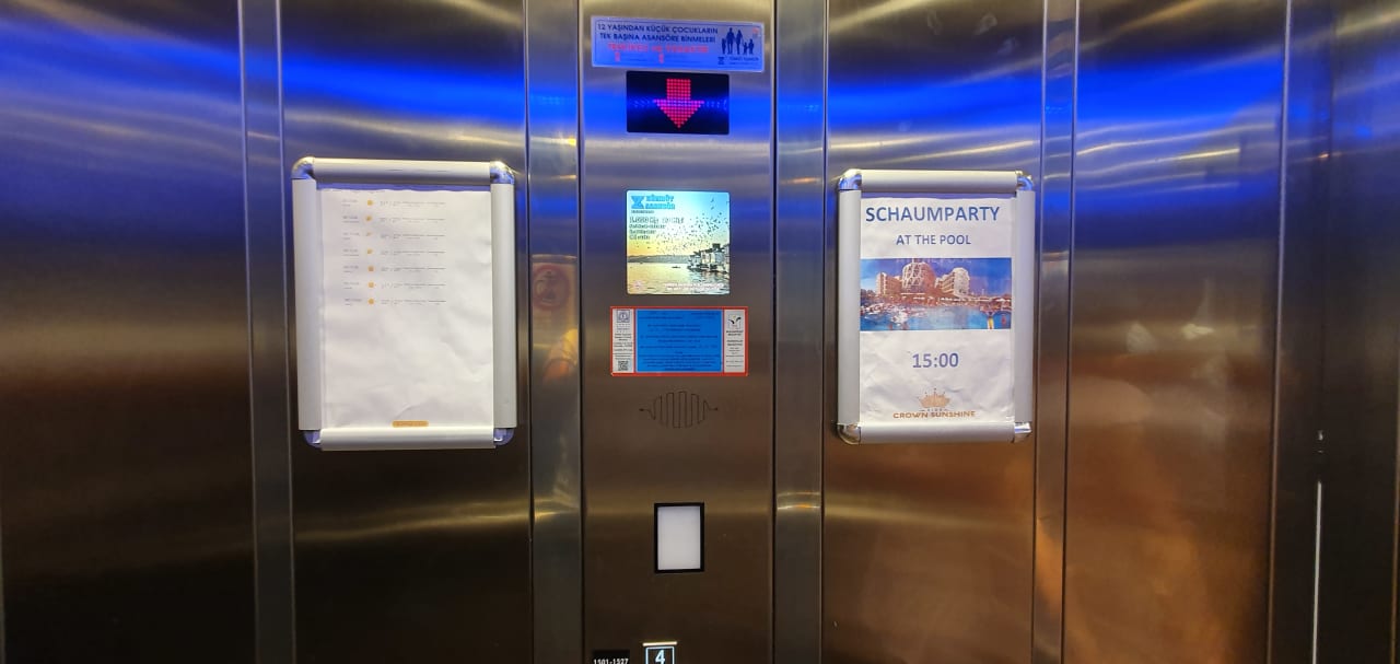 Im Aufzug Wetterinfo und das Programm