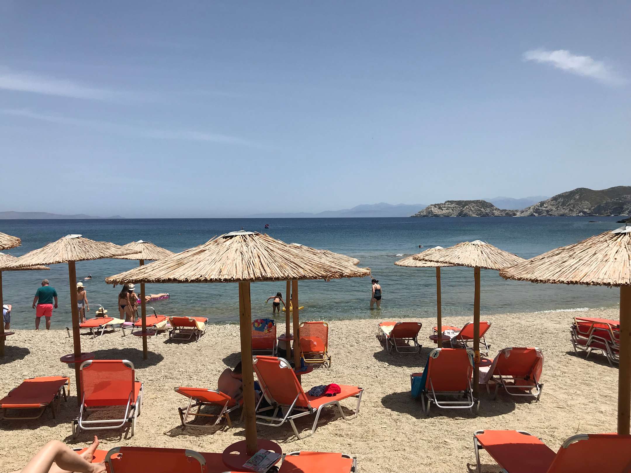 2 liegen und Sonnenschirm 7€ pro Tag Tavernen und Shops direkt am Strand, faire Preise.
