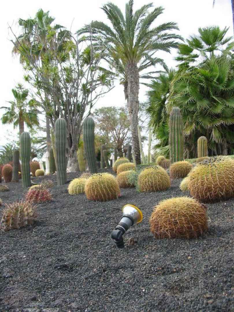 Blick vom Liegestuhl auf ein schön angelegtes Kakteenbeet