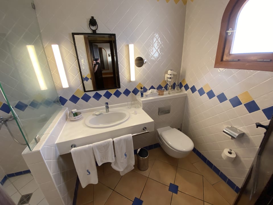 Liebevoll eingerichtetes Badezimmer mit Tageslicht.