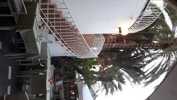 Teil des Gartenrestaurants mit Treppe zu den Liege