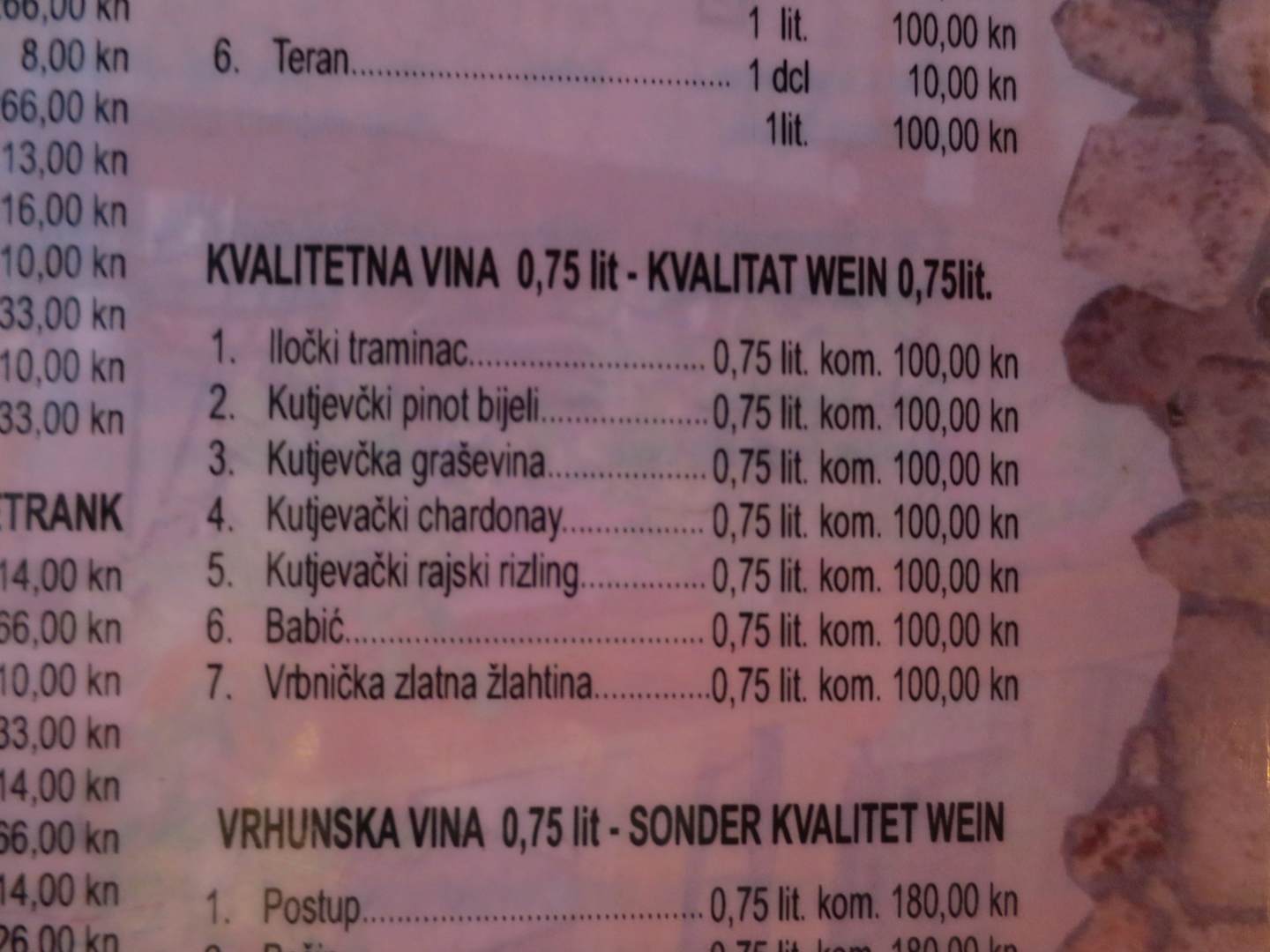 Speisekarte Restaurant eingedeutsch