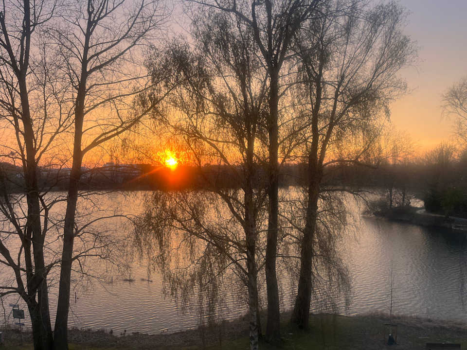 Abendlicher Blick aus dem Restaurant auf den See.