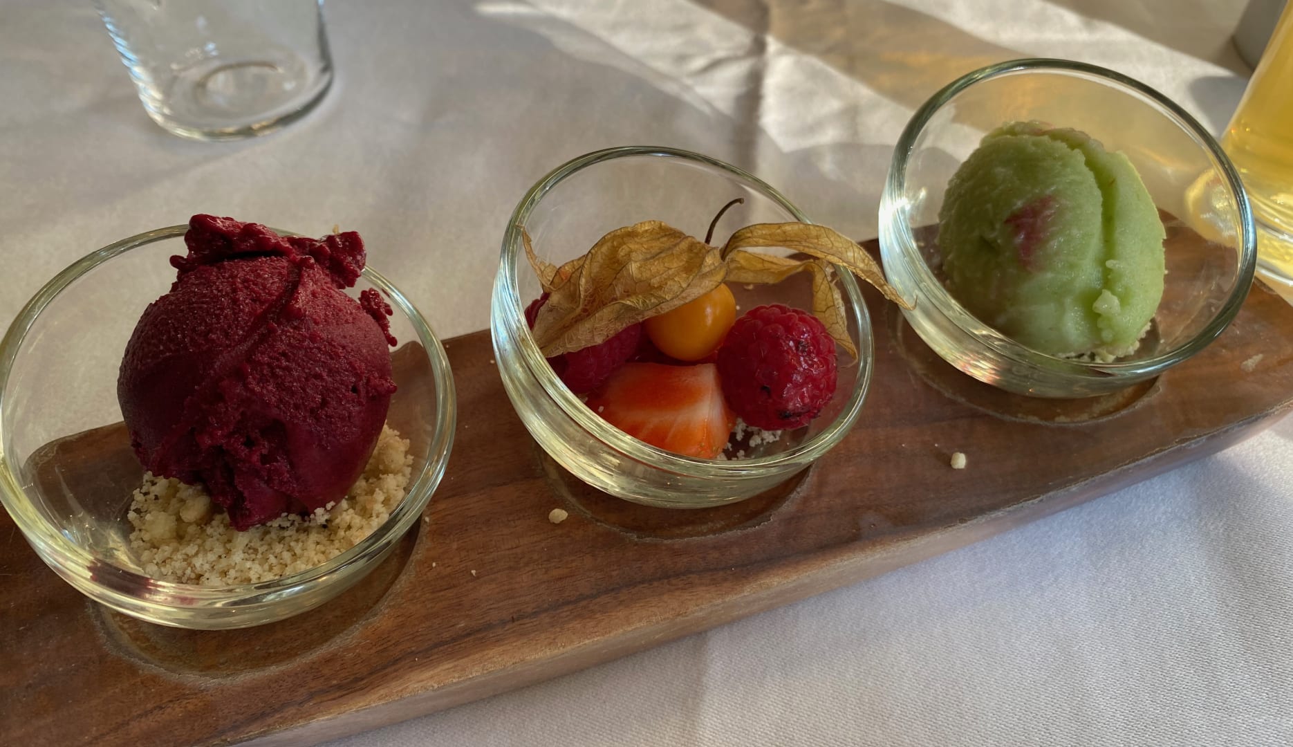 Hausgemachtes Cassis und Apfelsorbet