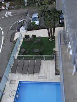 Blick vom Balkon auf den Pool