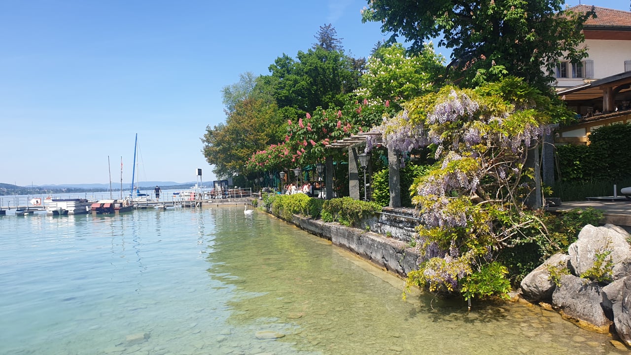 Die Sicht zur Terrasse vom Restaurant Seerose.