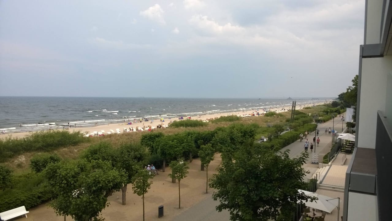 Blick nach rechts vom Balkon Eckzimmer Haus  SEETELHOTEL Kaiserstrand Beachhotel