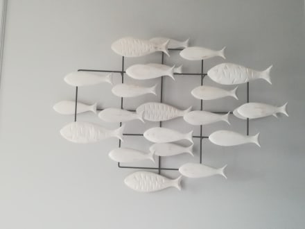 Schöne Wanddekoration über unserem Bett.