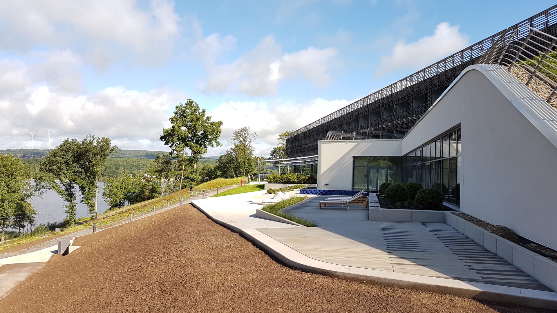 Außenbereich von der Sauna und Schwimmbad.