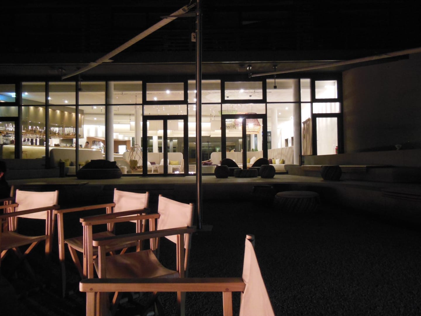 Lobby von außen bei Nacht