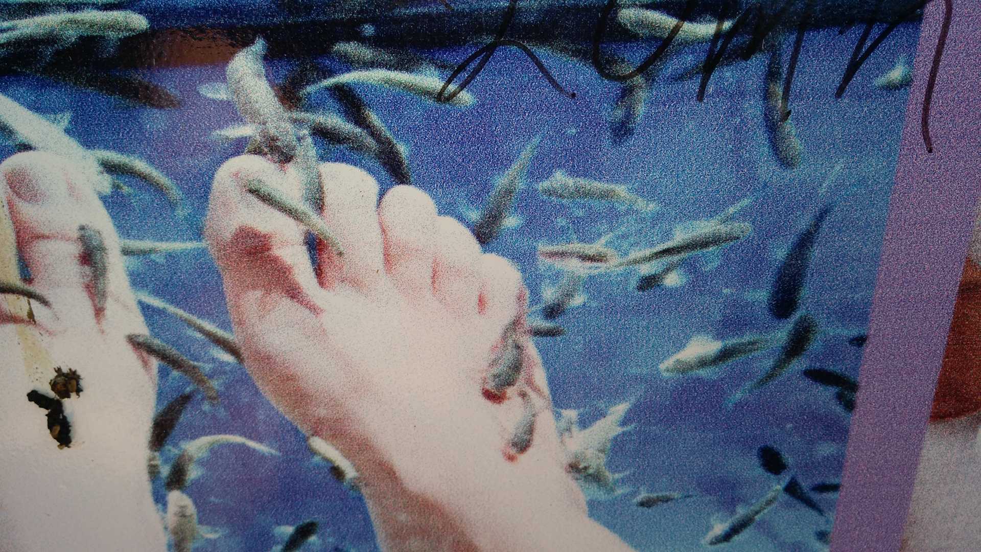 Beim Baden der Füße mit den Fischen.Super