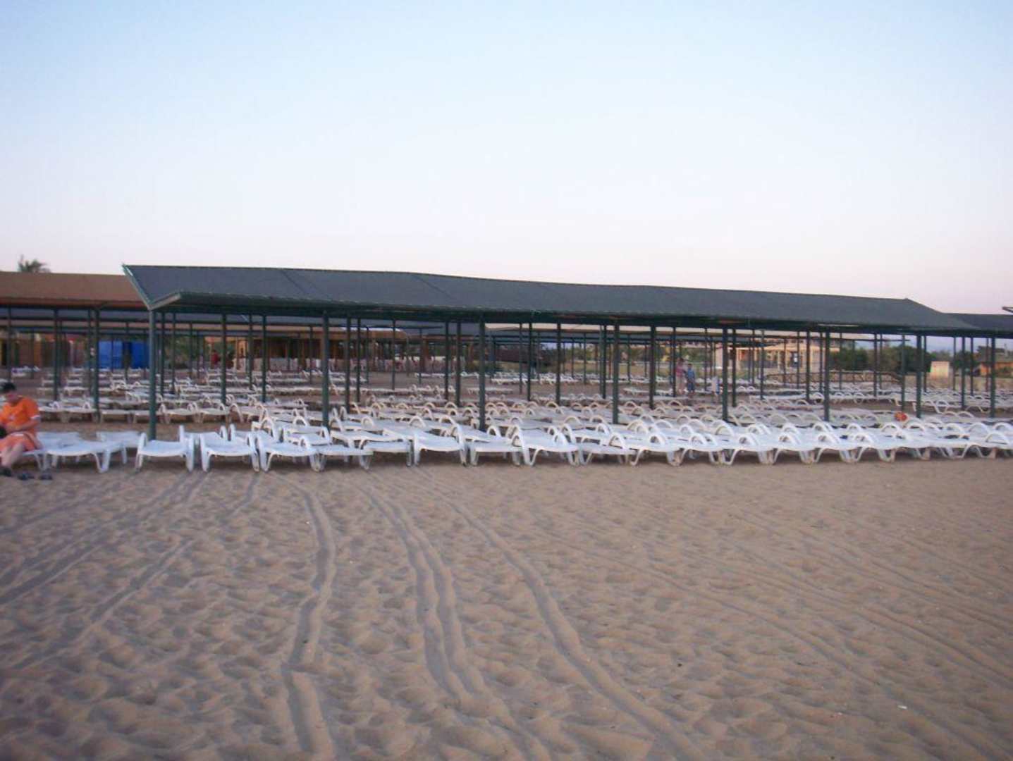 Hoteleigener Stranddie "Liegenlandschaft" am hoteleigenen Strand