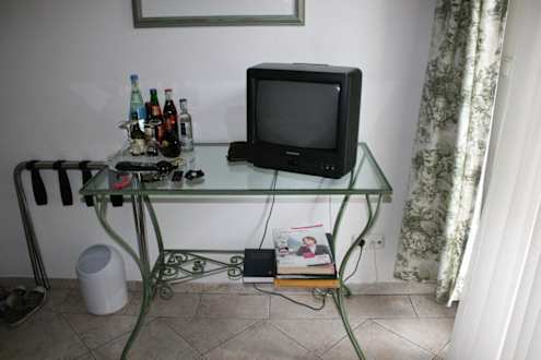 SchreibtischDieser Tisch war Schreibtisch/ Fernsehtisch und "Minibar" in einem... Fernseher leider relativ klein und die Getränke waren warm.