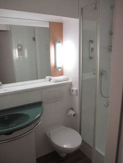 Badezimmer etwas beengt, aber alles da