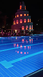 Die Wasserrutsche ist bei Nacht ein wahrer Eycatcher