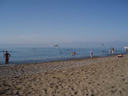 Wurde ständig gereinigtAm Meereingang Kieselig aber gut ohne Schuhe zu überqueren. Im Meer feiner Sand.