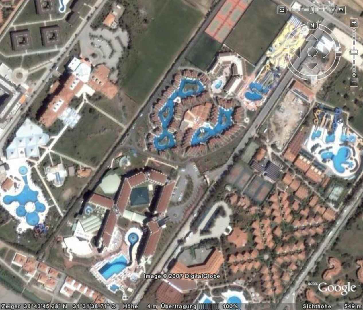 Silence Beach Resort aus dem Weltall gesehenBild von Google Earth das Silence Beach Resort (das mittlere Hotel)