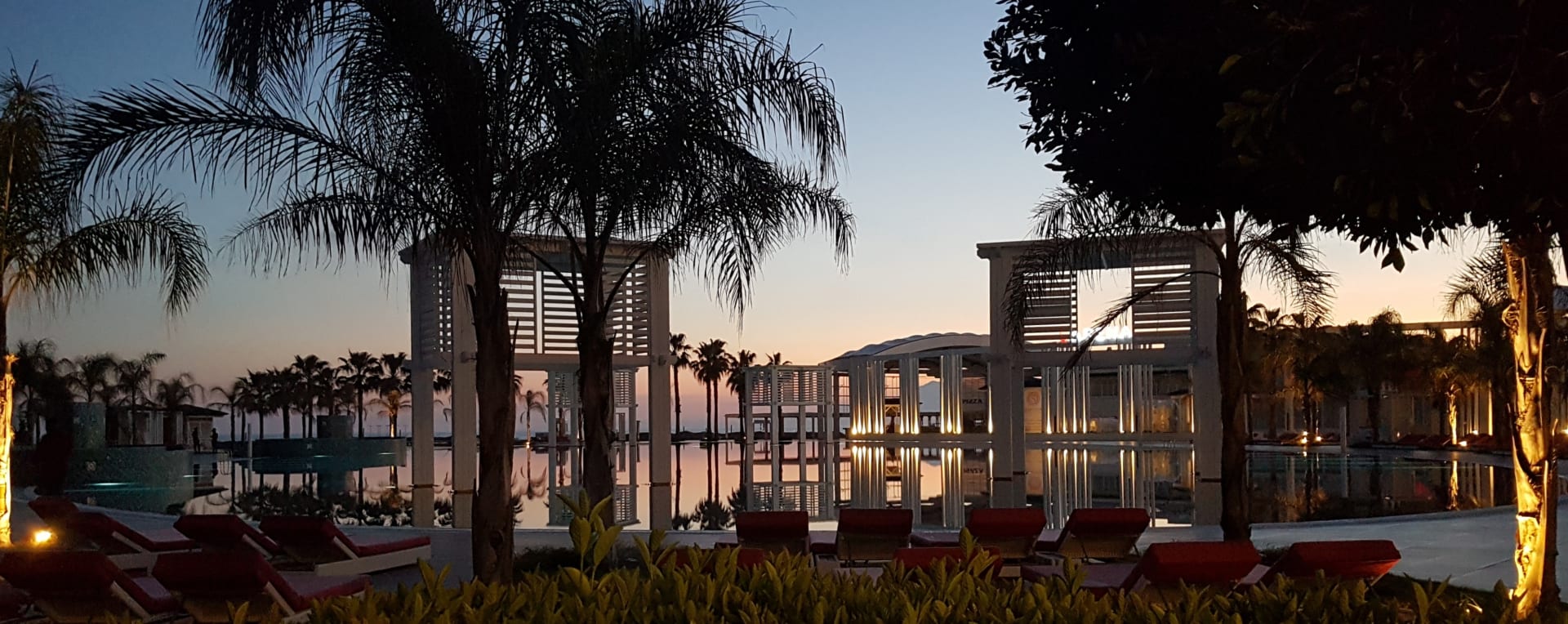 Blick über den Pool zum Strand