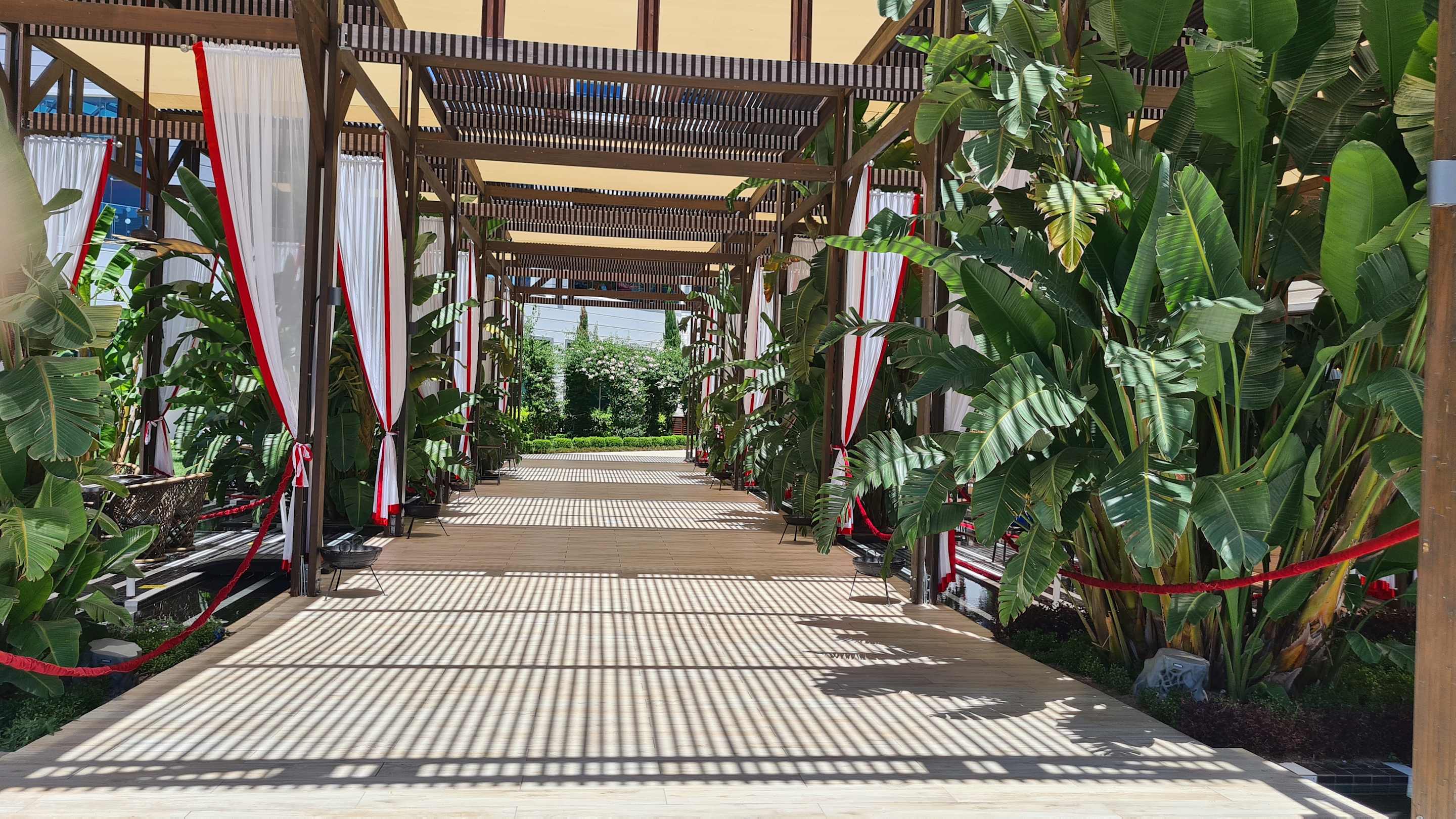 schön gestalteter Außenbereich des Hauptrestaurants