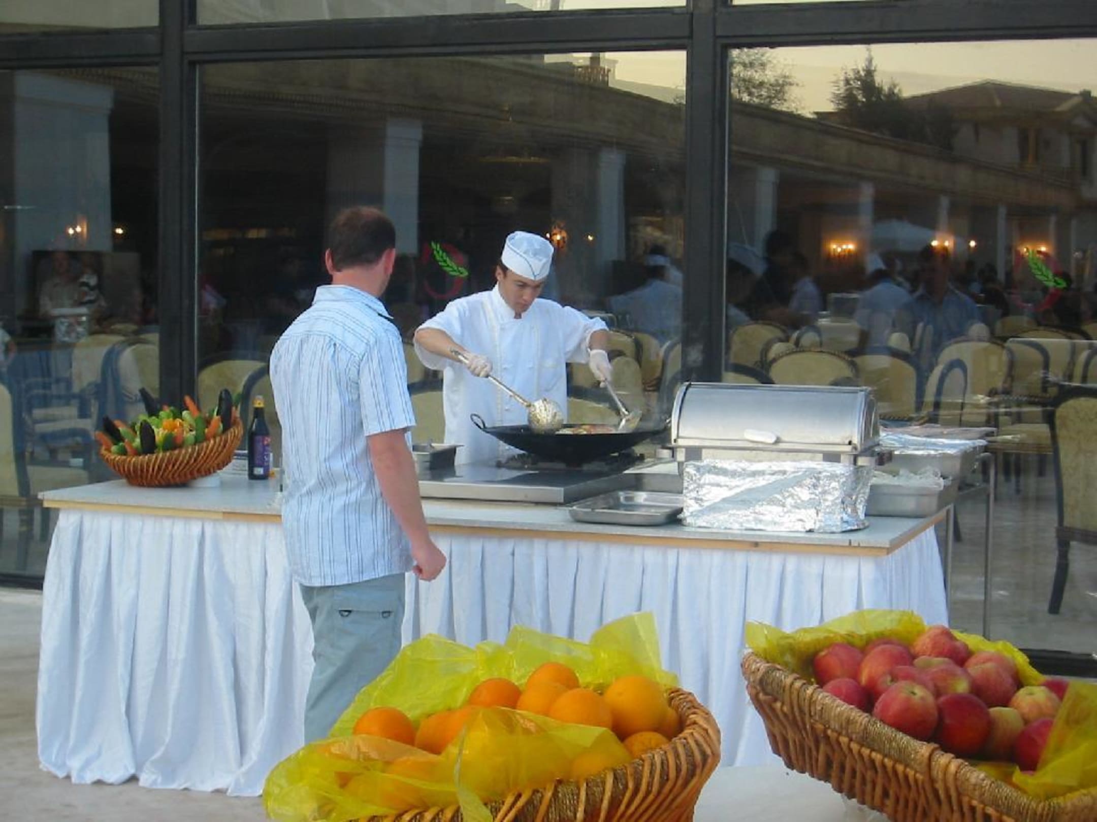 Kochen vor Ort (z. B. Wok)Beim Abendessen gibt es auch " Stationen" an denen frisch zubereitet wird, wir hier z. B. mit dem Wok.