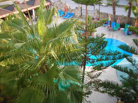 Vom Balkon hatte man einen Blick zum Pool.