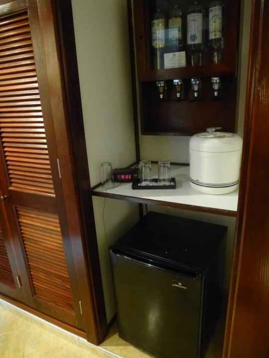 4versch.alk. Getränke und ein Kühlschrank voll mit Wasser und Softgetränken. Beides wird aller 2Tage aufgefüllt.