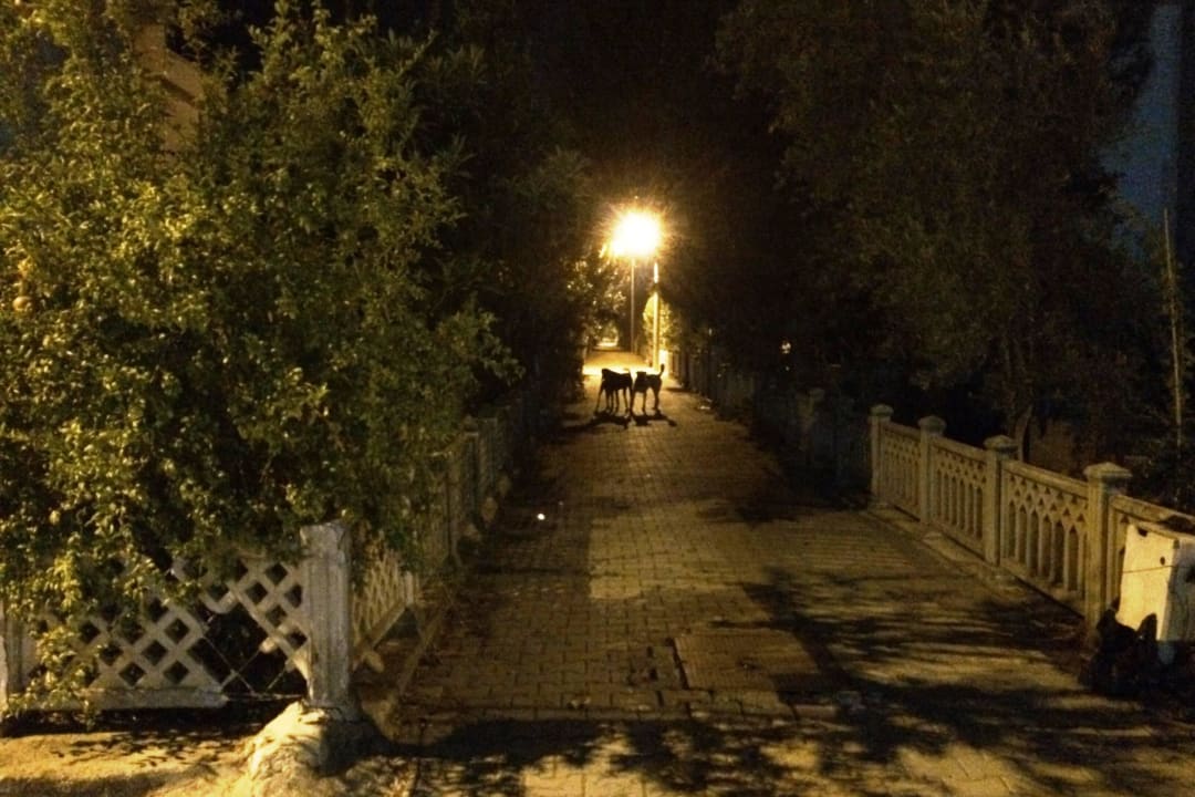 Nächtliche Szene in der Nähe vom Hotel
