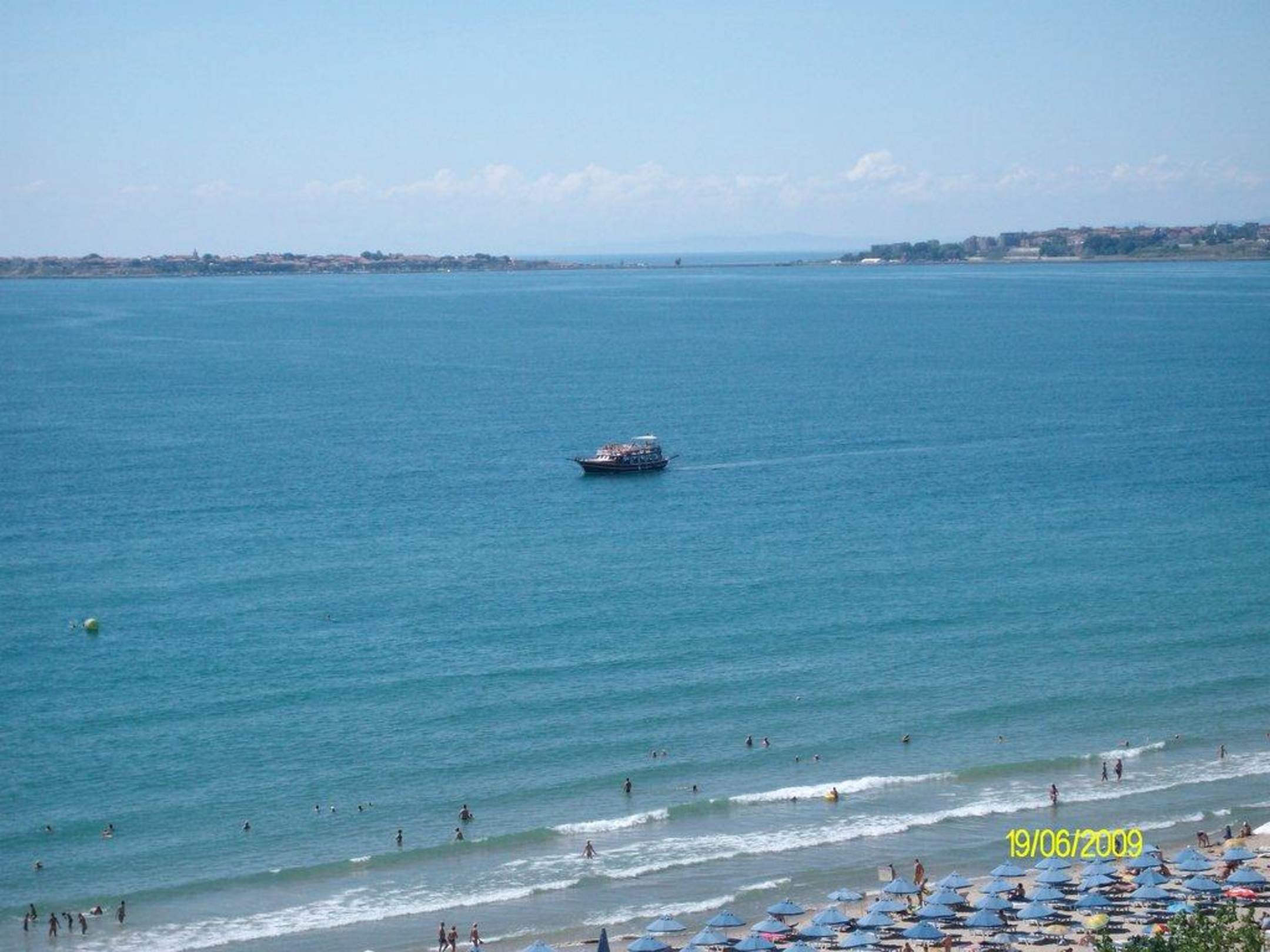 Ein Blick vom Balkon unseres Zimmers im 12.Stockwerk über das Meer nach Nessebar