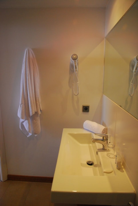 ZimmerWaschbecken im Bad mit Fön und einem (!) Haken