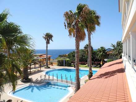 Ausblick über die Poolanlage zum Atlantik