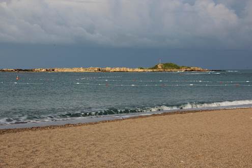 Hotelstrand mit vorgelagerter Insel