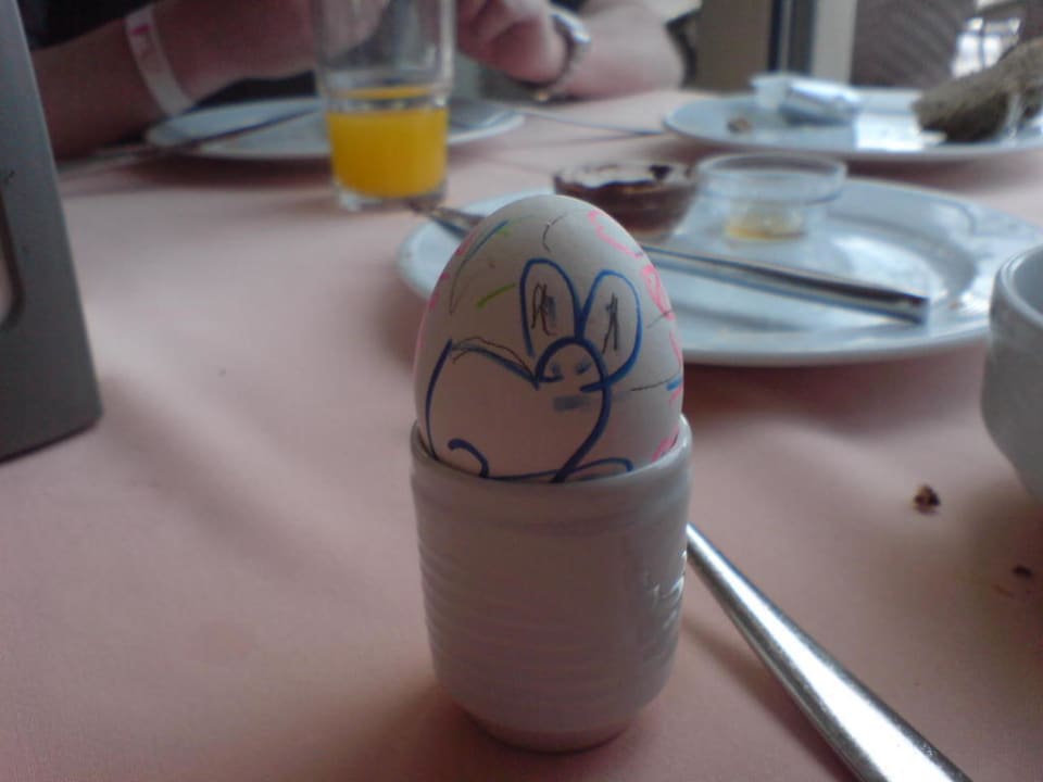 Die Kellner haben am Ostersonntag für die Kinder Ostereier bemalt.