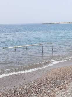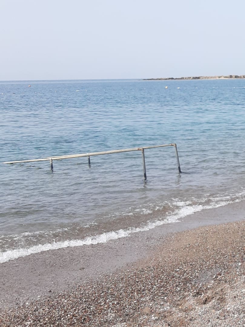 Sehr gut !! Hilfe zum Einstieg ins Meer !!!!!! Strand,im Wasser steinig.Badeschuhe empfelenswert.
