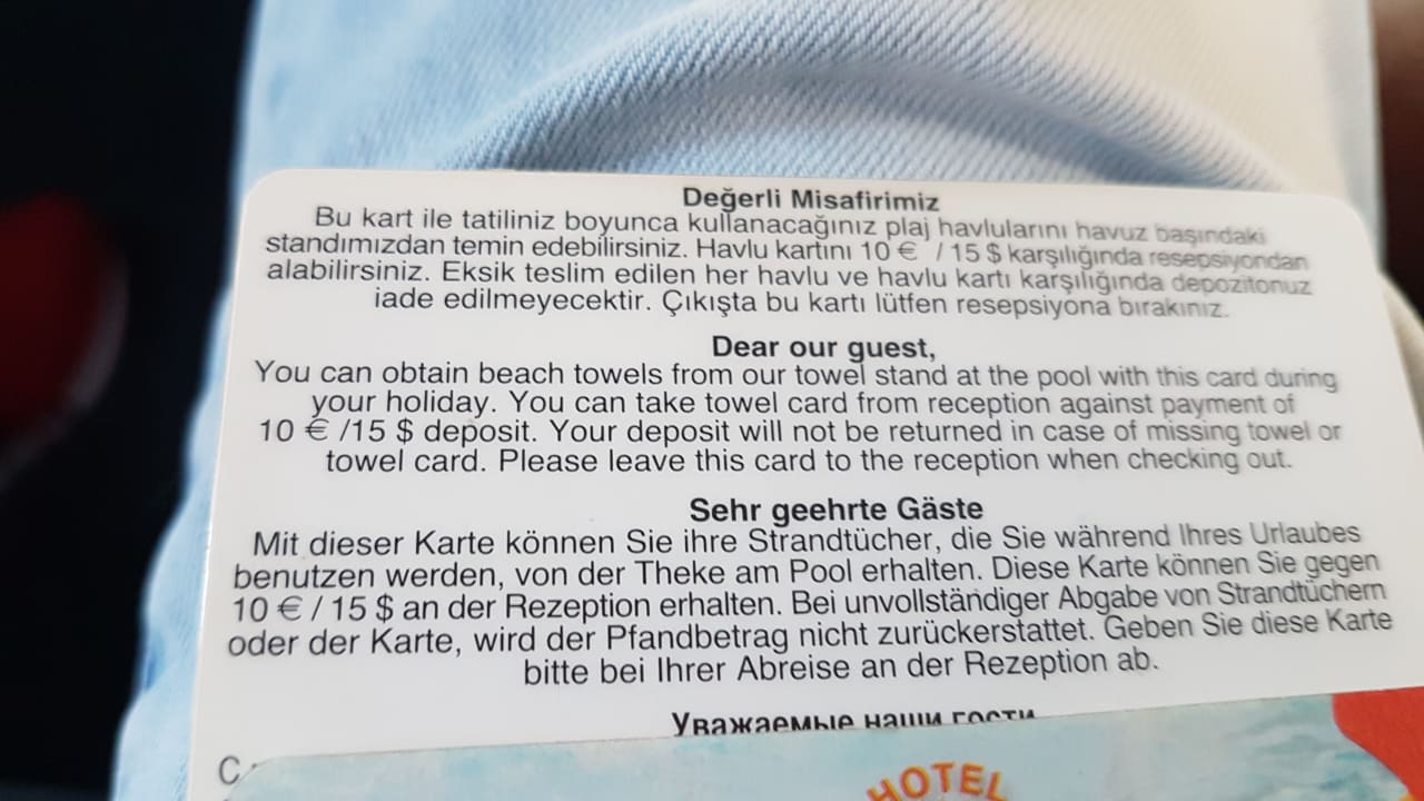 Leider bekommt man die Kaution nicht zurück obwohl es auf der Karte steht.Karte nicht aus der Hand gegeben und an den Reiseveranstalter weitergeleitet