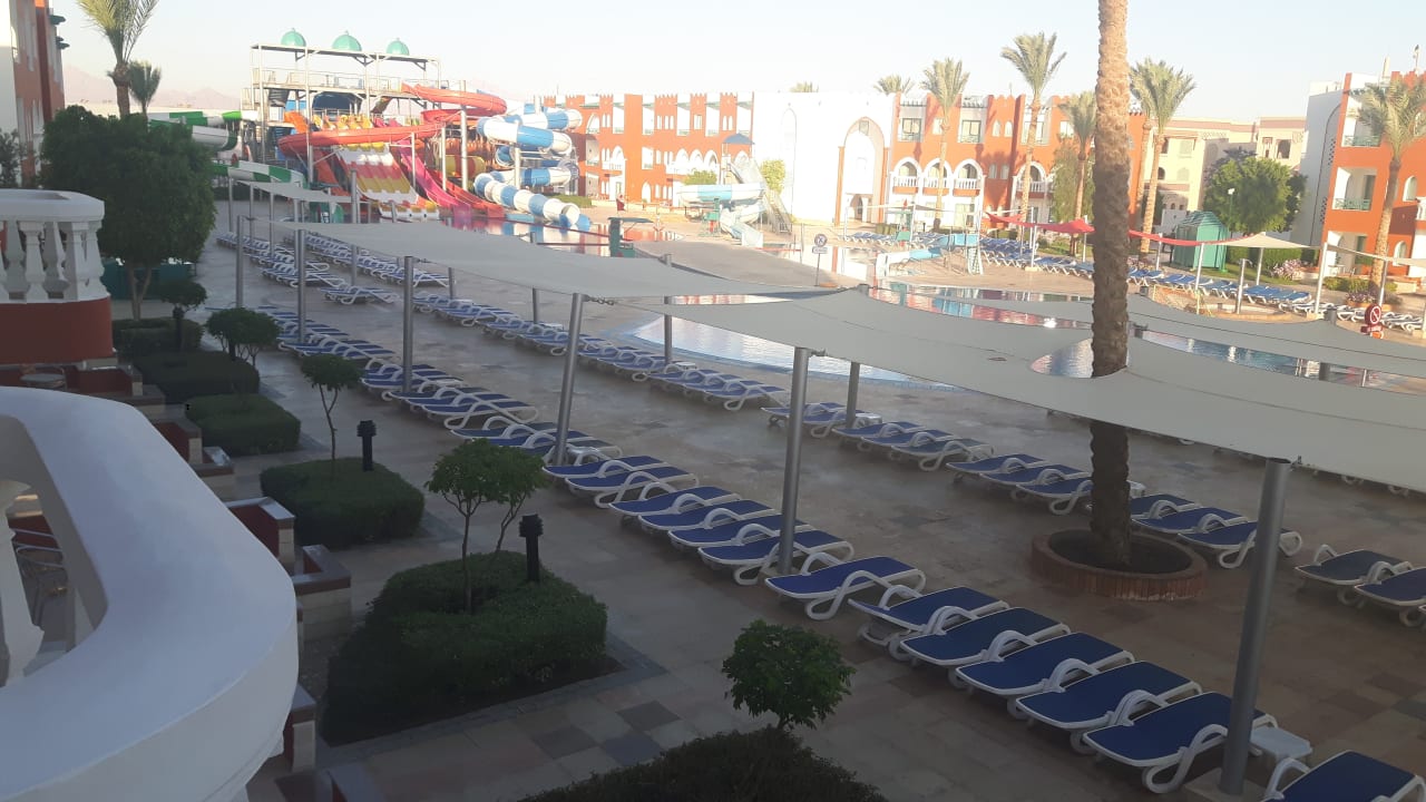 Ausblick morgens vom Zimmer auf den Aquapark