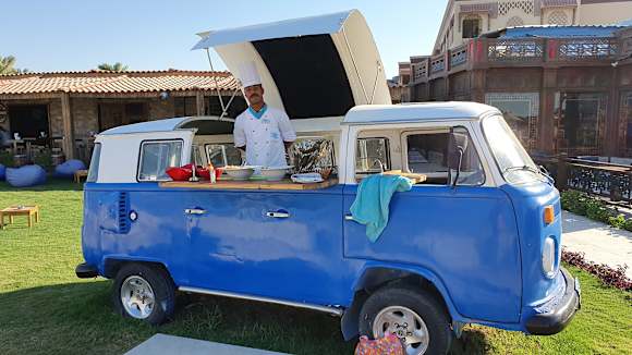 Imbissbully mit Fisch und Pommes