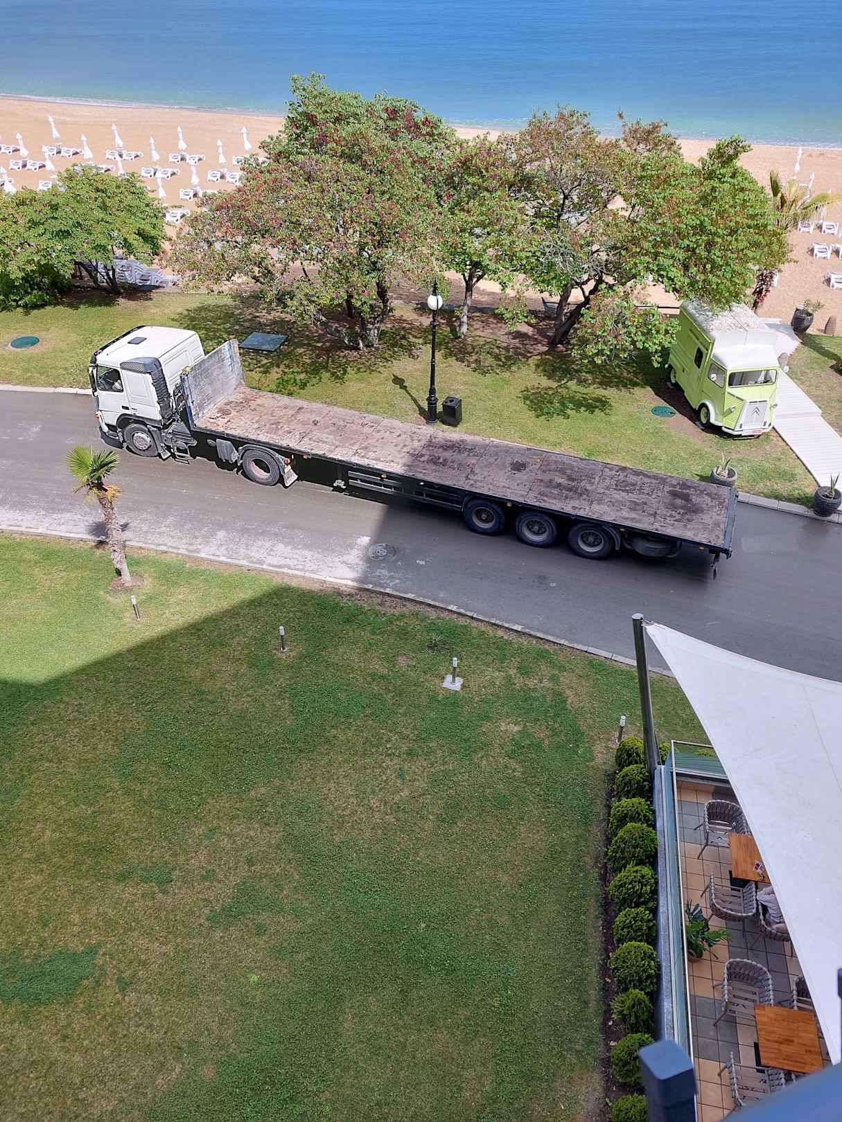 Baustellenfahrzeuge auf der Promenade
