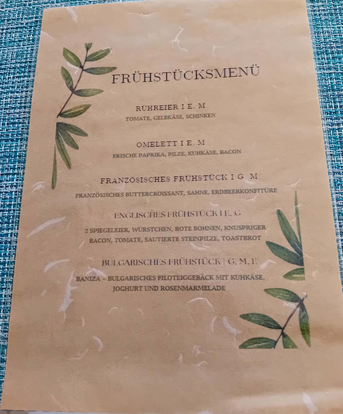 Ab 10 Uhr gibt es diese Menü -Karte im Hauptrestaurant für das Spätfrühstück