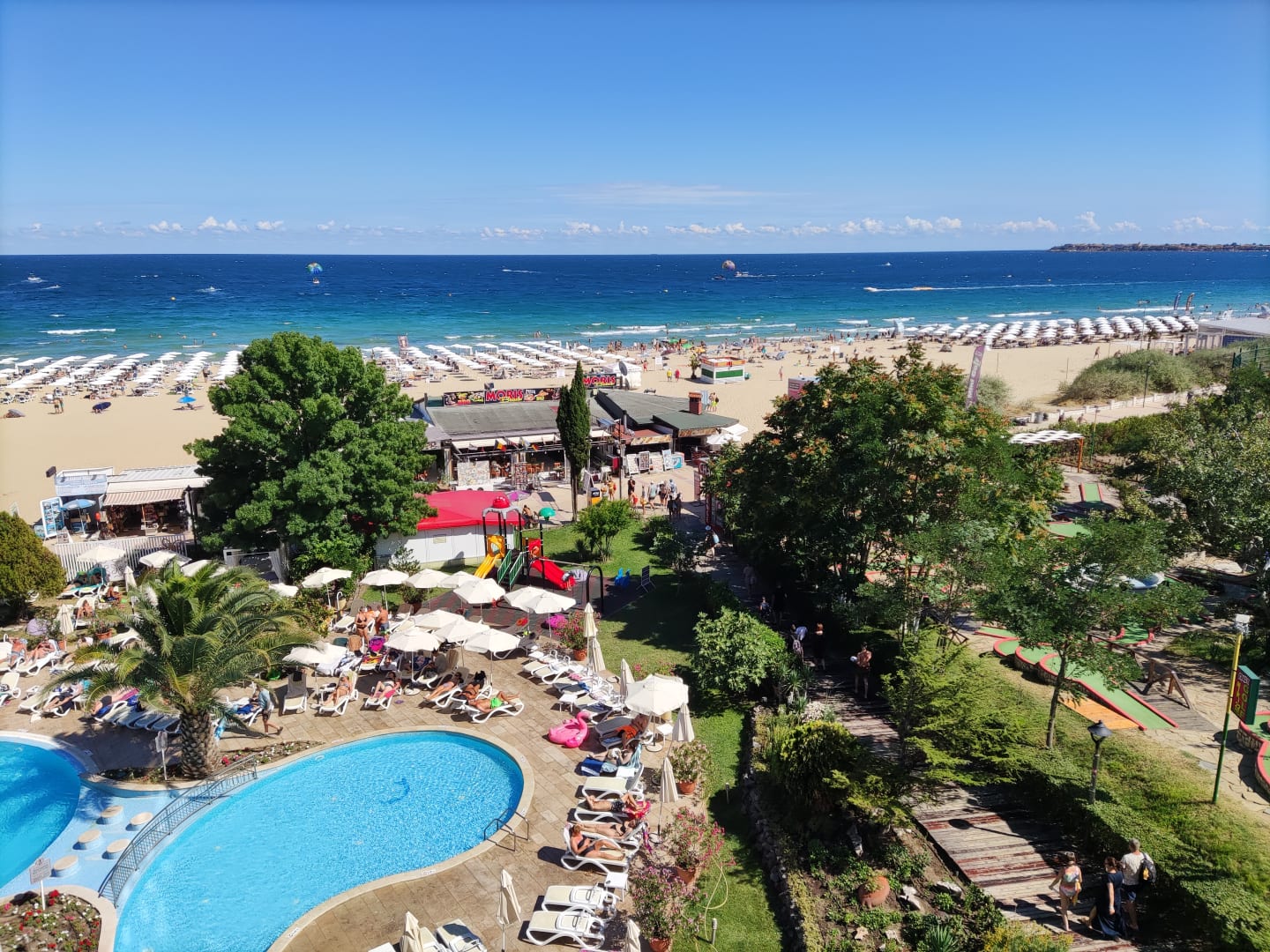 Blick aufs Meer und die Hotelanlage